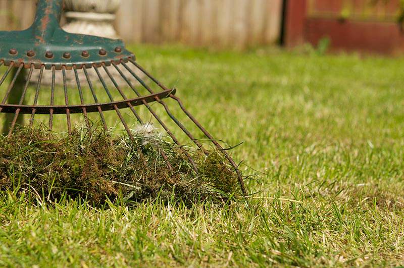 Start your journey to a thicker lawn by removing unwanted weeds. Then mow your grass to a height of about 1 inch. Follow that up with raking to remove any dead grass or debris.