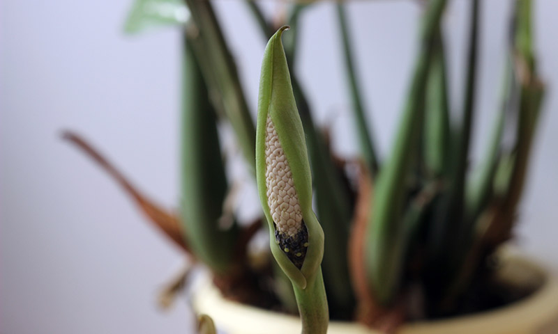 ZZ plant flowers are small, inconspicuous blooms similar to peace lily flowers.