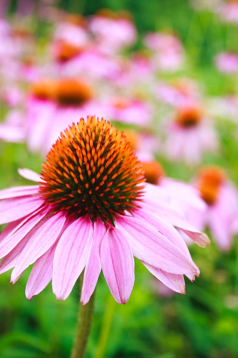 In general, cut perennials back to a few inches above where the stems meet the plant's crown at soil level, once the first killing frost hits. Clean up and dispose of debris to limit overwintering diseases and pests. Leave perennials such as purple coneflowers, black-eyed Susans and ornamental grasses standing tall; their seed heads enhance wintry views and feed foraging birds. Bring extra stems indoors and dry them upside down for use in dried autumn arrangements.