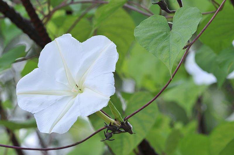 - Moonflowers, known by the botanical name Ipomoea alba, are nighttime versions of morning glories, their close relatives. Grown as annuals in the United States, these fast-growing vines open fragrant flowers at dusk and close them with the morning sun. Measuring up to 6 inches wide, their large white blooms appear from early summer until frost.1