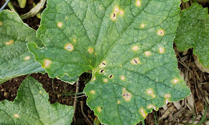 Cucumbers are vulnerable to anthracnose leaf spots and holes.