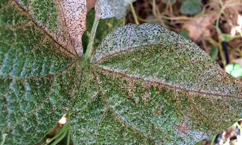 - Undersides of spots may show fuzzy fungal growth.